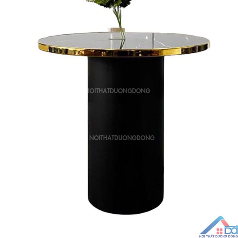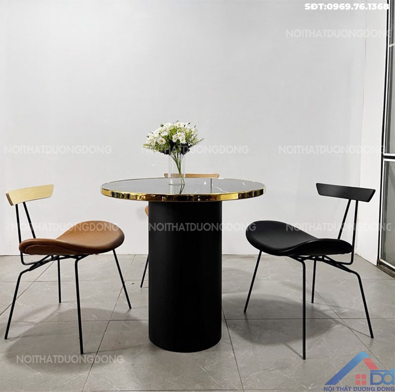 Chất liệu: Bàn chân thép sơn đen trắng, Mặt bàn đá nhập khẩu cao cấp có vành mạ vàng cao cấp.