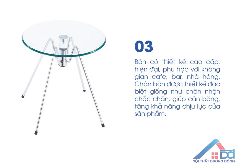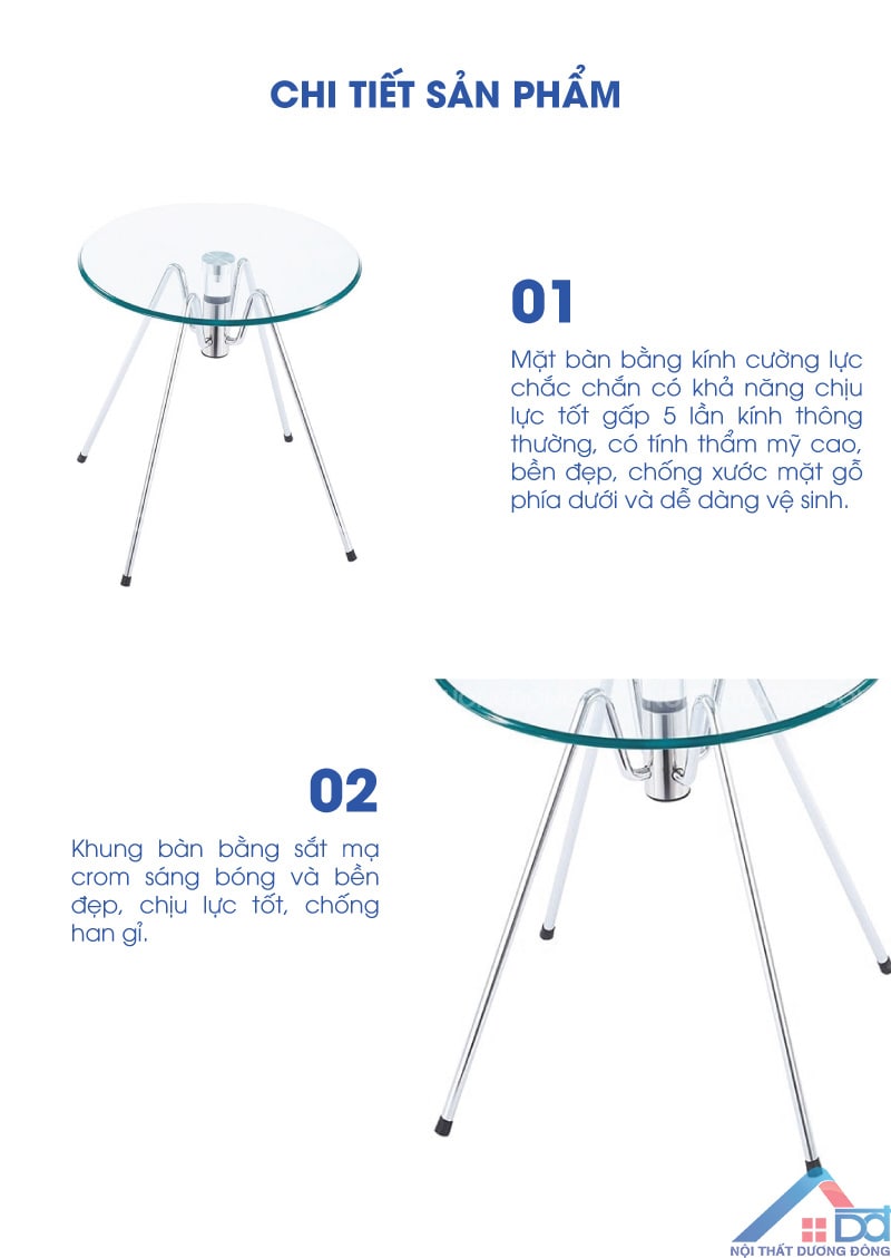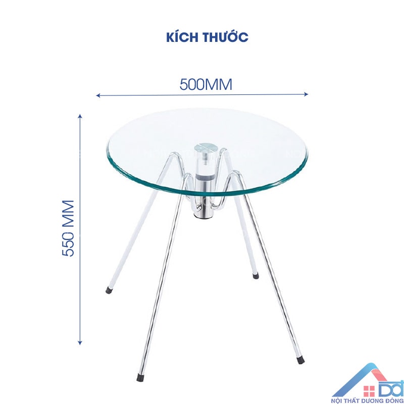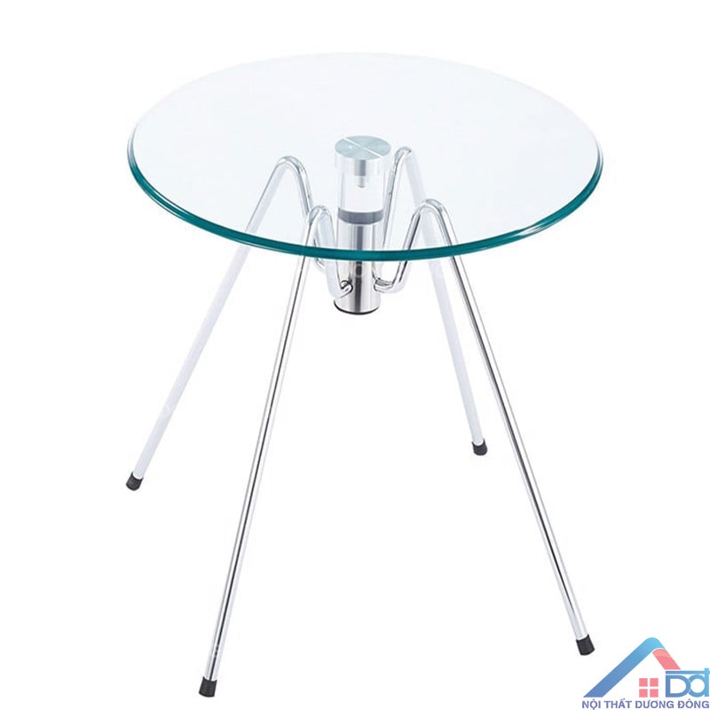 Bàn cafe D50 mặt kính cường lực -BCF 60 chân thép mạ crom sáng