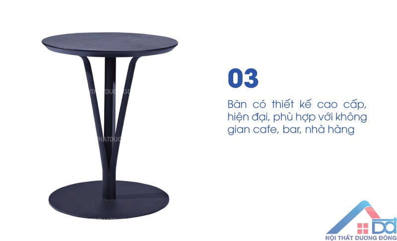 Thiết kế của bàn cafe D50 màu đen - BCF 62 là điểm nhấn đặc biệt, với mặt bàn tròn hiện đại và 3 khung bàn được thiết kế một cách tỉ mỉ và tinh tế. Chân bàn dẹt bằng sắt sơn tĩnh điện không chỉ tăng độ chắc chắn mà còn tạo điểm nhấn độc đáo cho sản phẩm.