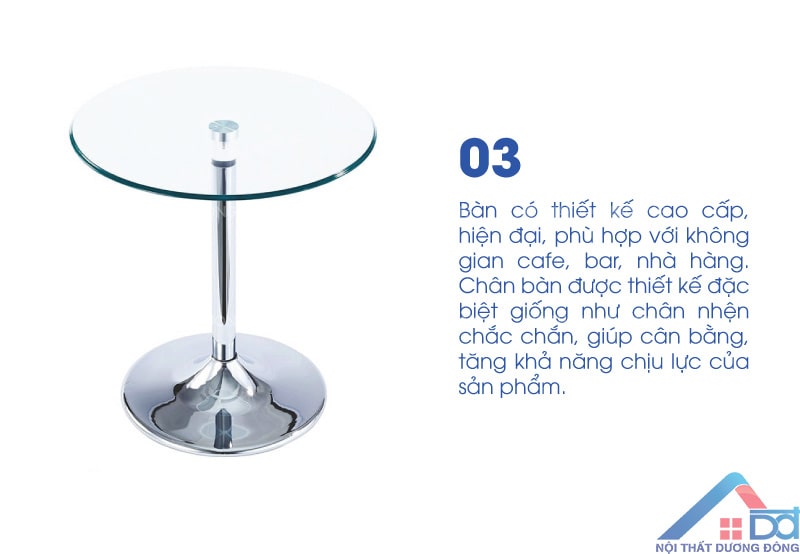 Mang chất liệu cùng vẻ đẹp hiện đại, mới mẻ, sản phẩm này đáp ứng được nhu cầu và mong muốn của nhiều khách hàng hiện nay. Sự hài hòa trong chất liệu, màu sắc,... cùng tính ứng dụng cao đã tạo nên được sức hấp dẫn cho mẫu thiết kế. Cùng chúng tôi tham khảo chi tiết mẫu bàn cafe D60 mặt kính -BCF 59 qua hình ảnh và nội dung dưới đây: