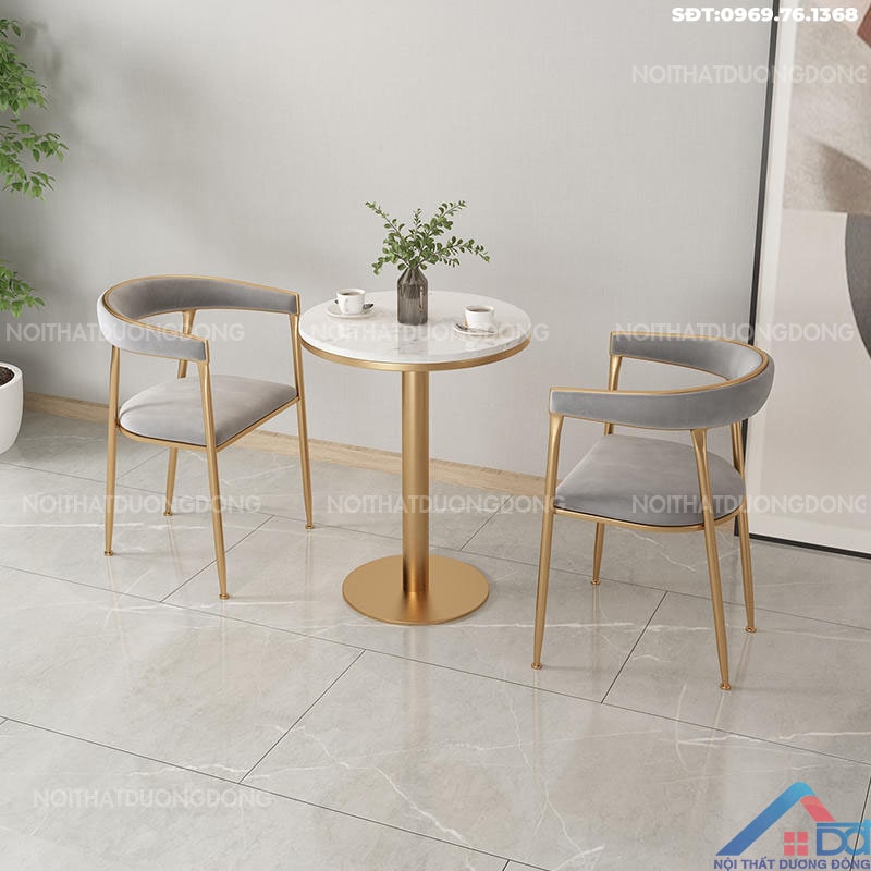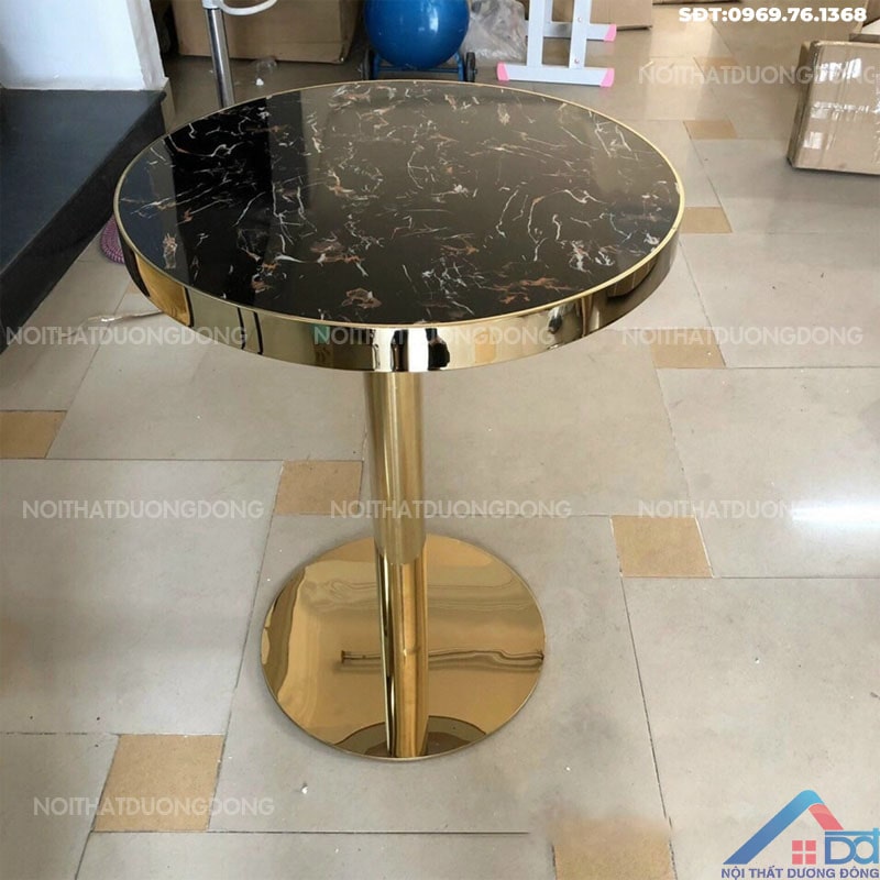 Chất liệu: Mặt đá gốm, chân inox mạ vàng, kết hợp với sắt sơn tĩnh điện