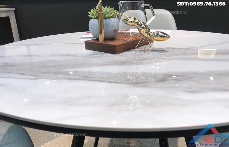 Chất liệu: Chân bàn bằng sắt sơn tĩnh điện, mặt bàn bằng đá phiến cao cấp.