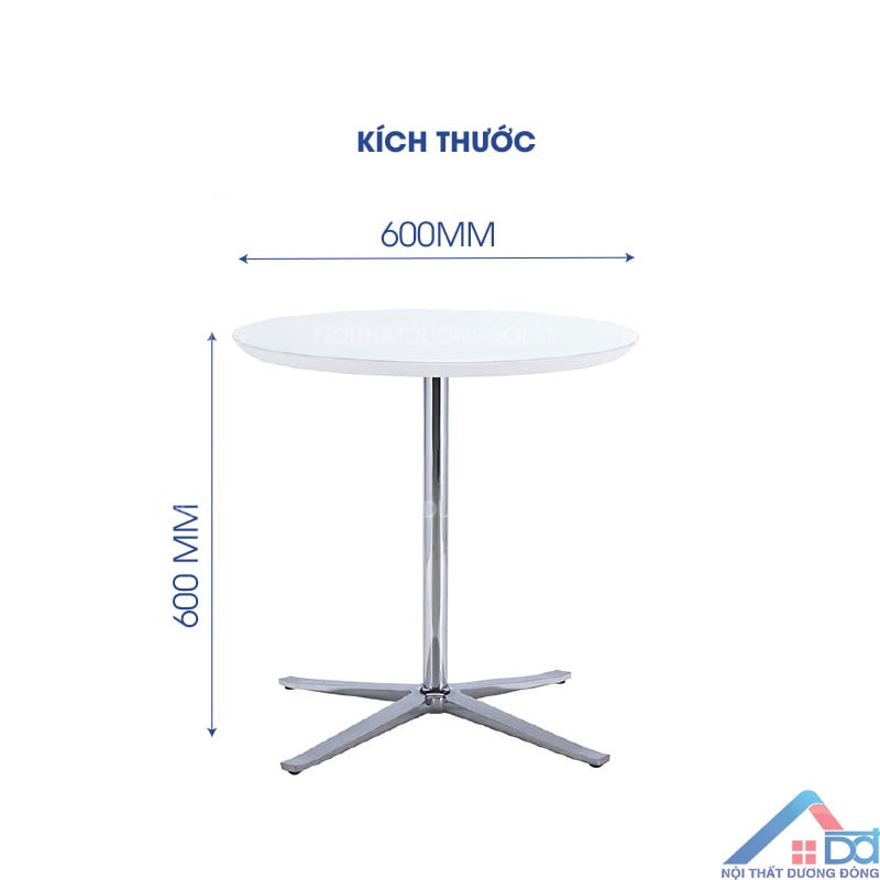 Kích thước lý tưởng: Với đường kính mặt bàn 600mm và chiều cao 600mm, mẫu bàn này phản ánh sự cân đối và thuận tiện cho không gian cafe. Kích thước nhỏ gọn và phù hợp với không gian, diện tích của nhiều không gian kinh doanh có diện tích hạn chế.