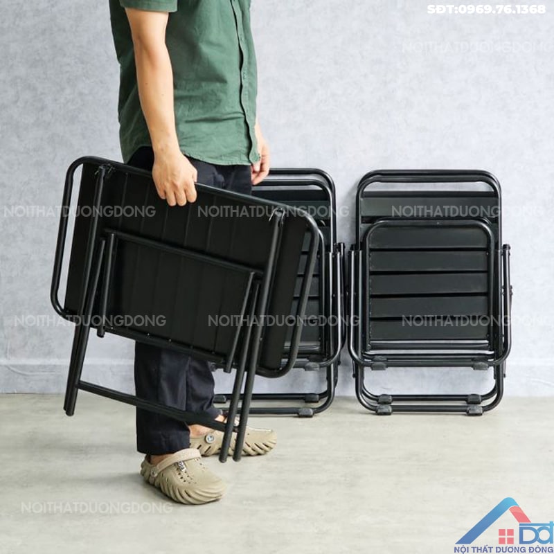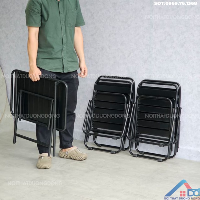 Thiết kế gấp gọn: Bàn và ghế được thiết kế để có thể gấp lại khi không sử dụng, tối ưu hóa không gian và tạo điều kiện thuận lợi cho việc di chuyển và lưu trữ. Điều này rất hữu ích trong việc tối ưu hóa không gian trong nhà hàng hoặc quán cà phê, đặc biệt là vào những khoảnh khắc không có khách hàng.