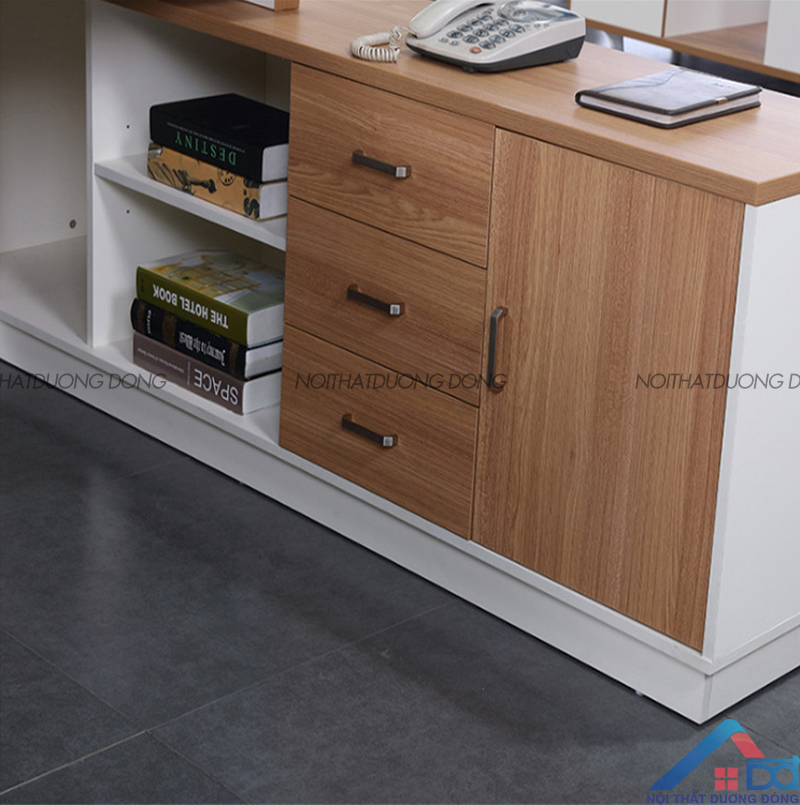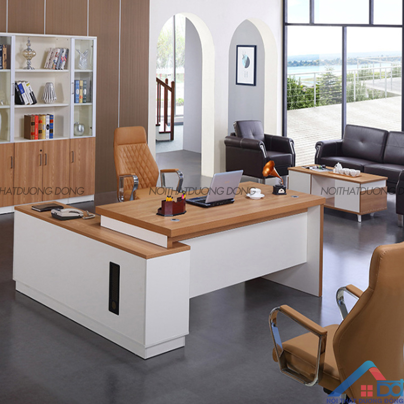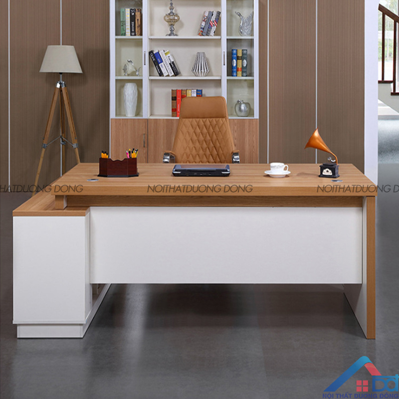 Một chiếc bàn làm việc đẹp và tiện nghi sẽ giúp tăng hiệu quả công việc và thể hiện phong cách của chủ nhân căn phòng. Bàn Giám đốc kèm tủ phụ đang năng Dương Đông với cốt gỗ MFC phủ Melamine cao cấp, màu vân gỗ nâu sáng mang phong cách châu Âu sẽ là sự lựa chọn hoàn hảo cho bạn.