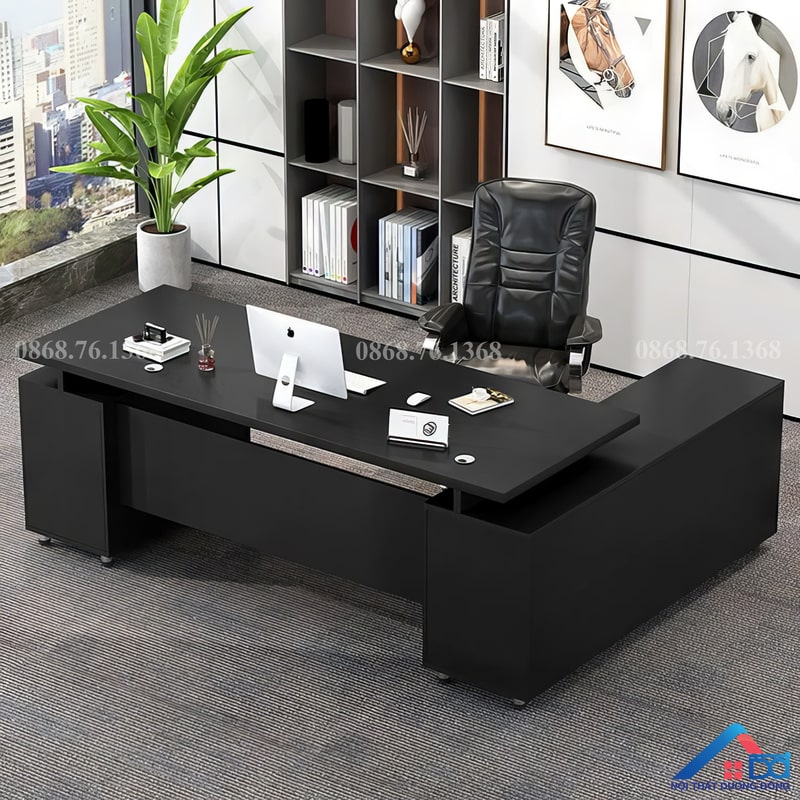 Bàn giám đốc cao cấp hình chữ L - GĐ 60 màu đen hiện đại