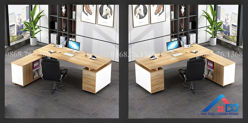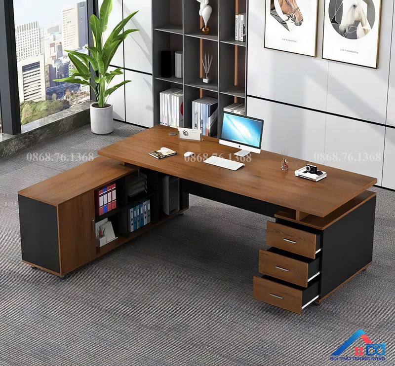 Trong thời đại mà không gian làm việc ngày càng được chú trọng về cả công năng lẫn thẩm mỹ, một chiếc bàn giám đốc không chỉ là nơi xử lý công việc mà còn là biểu tượng thể hiện đẳng cấp và phong thái lãnh đạo. Bàn giám đốc cao cấp hình chữ L – GĐ 60 chính là lựa chọn lý tưởng cho những nhà điều hành mong muốn sở hữu không gian làm việc sang trọng, hiện đại và khoa học. Với thiết kế hình chữ L tiện nghi, chất liệu cao cấp cùng đường nét tinh tế, sản phẩm hứa hẹn mang đến sự thoải mái, đẳng cấp và hiệu quả cho mọi giám đốc trong môi trường làm việc chuyên nghiệp.