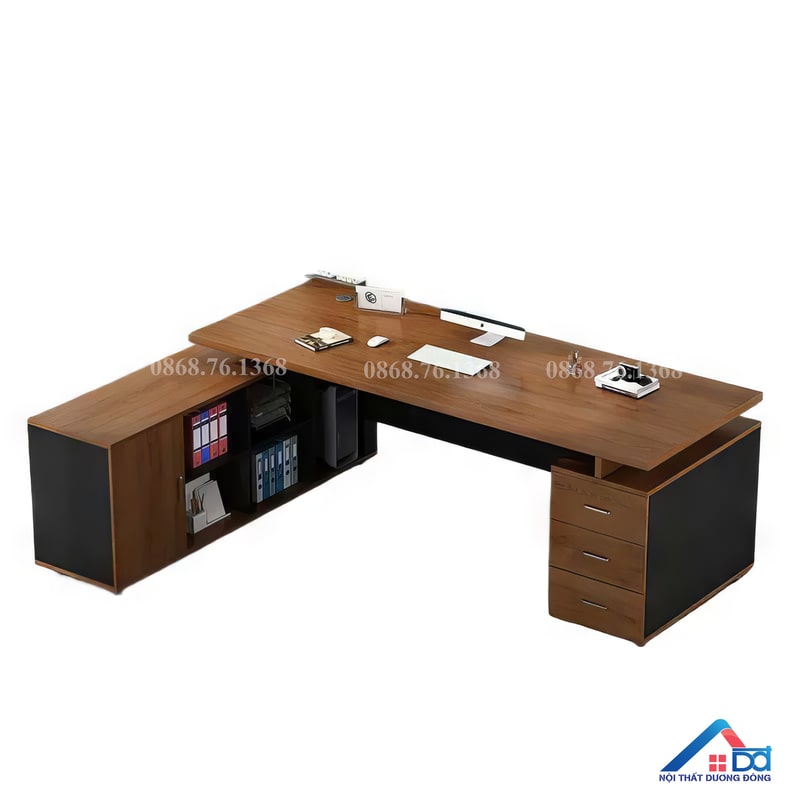 Bàn giám đốc cao cấp hình chữ L - GĐ 60 với nhiều ngăn , hộc tủ chứa đồ