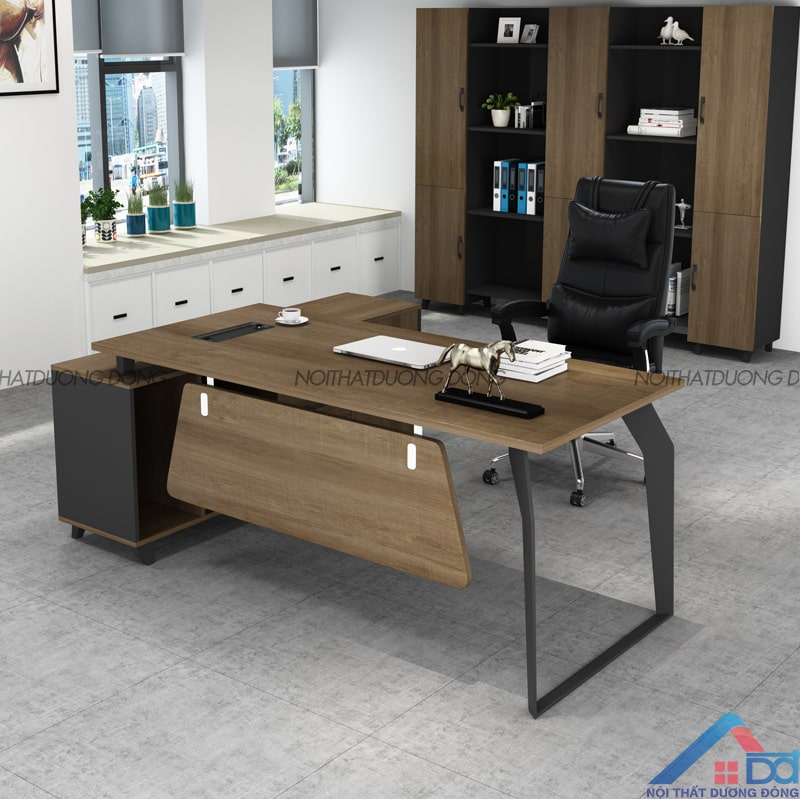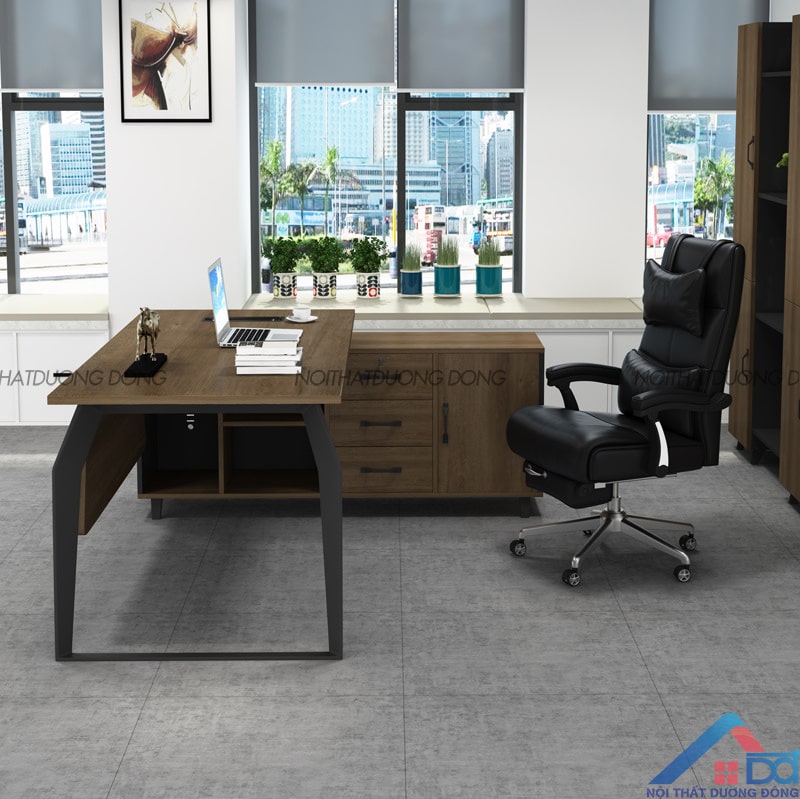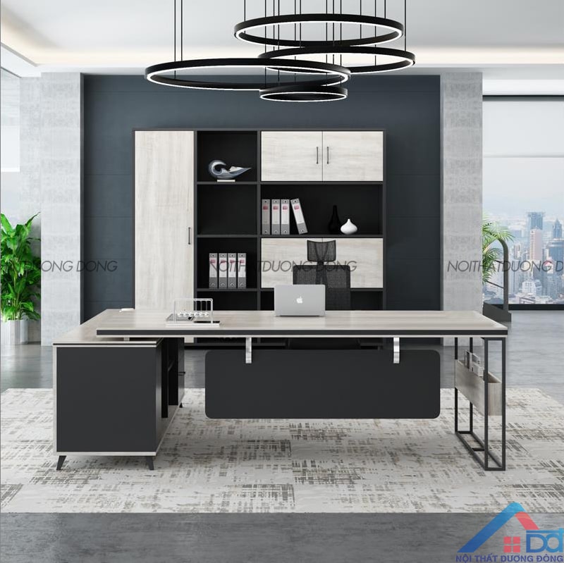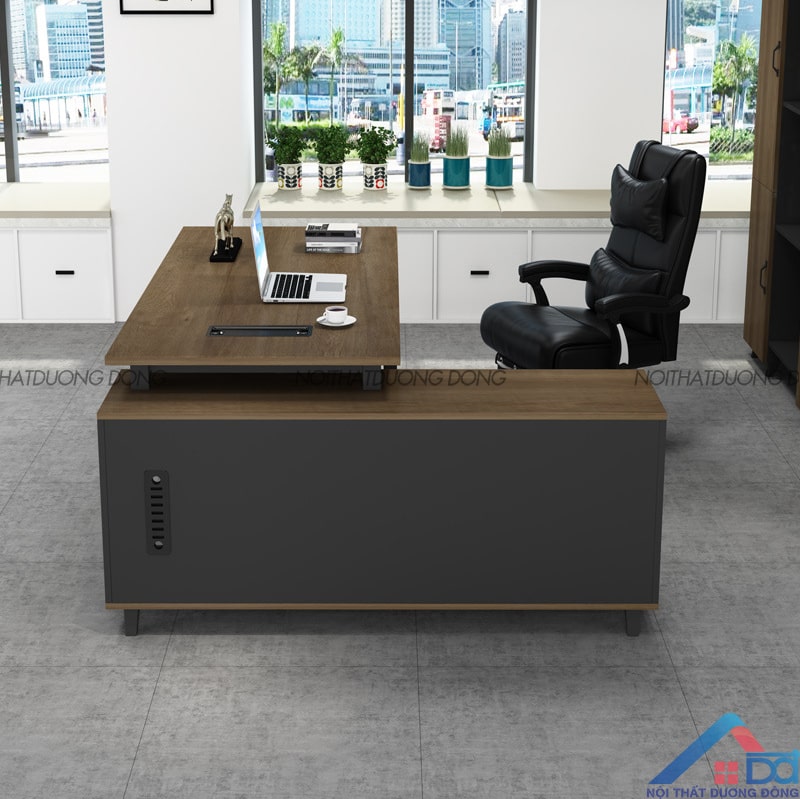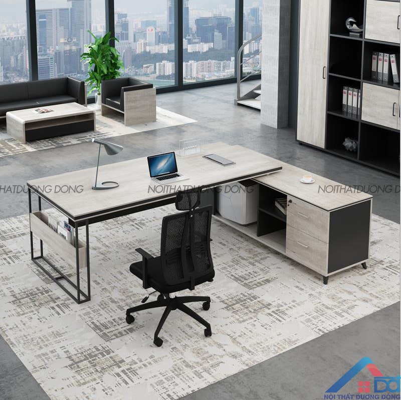 Mẫu bàn có kết hợp với tủ phụ hiện đại, giúp tối ưu không gian sử dụng cho người dùng