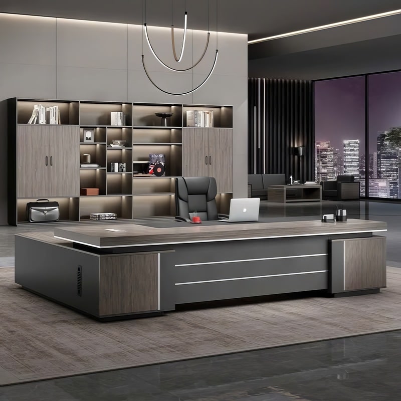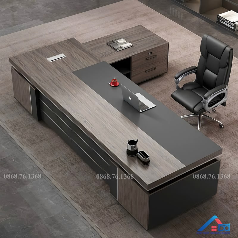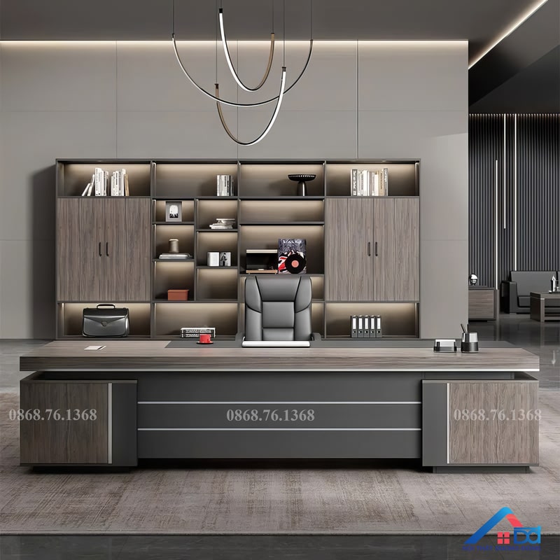 Với tone màu nâu gỗ trầm ấm hoặc xám ghi trung tính, mẫu bàn GĐ 64 rất dễ kết hợp với các món nội thất khác như ghế giám đốc da, tủ hồ sơ, kệ trang trí hoặc các tiểu cảnh xanh nhỏ. Sự hài hòa về màu sắc và chất liệu giúp văn phòng trở nên ấm cúng, thân thiện nhưng vẫn toát lên vẻ đẳng cấp của người lãnh đạo. Dù không gian theo xu hướng hiện đại, cổ điển hay tối giản, bàn GĐ 64 đều có thể “hòa nhập” và nâng tầm thẩm mỹ.