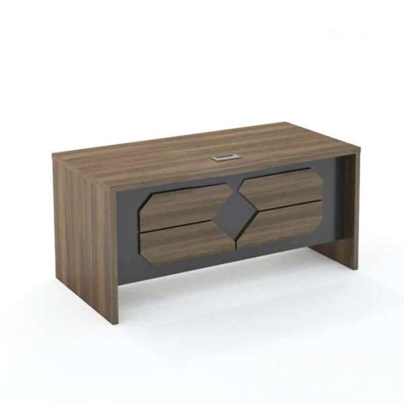 Về mặt thẩm mỹ, bàn giám đốc GĐ 83 gây ấn tượng bởi sự phối hợp hài hòa giữa màu vân gỗ trầm ấm và tông ghi trung tính ở phần chân và mặt trước bàn. Đặc biệt, họa tiết hình học cắt cạnh ở mặt trước tạo điểm nhấn độc đáo, giúp chiếc bàn trở thành tâm điểm trong không gian làm việc mà không cần đến những chi tiết cầu kỳ. Đây là lựa chọn hoàn hảo cho những giám đốc yêu thích sự đơn giản, tinh tế và đẳng cấp.