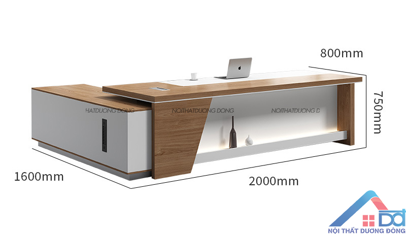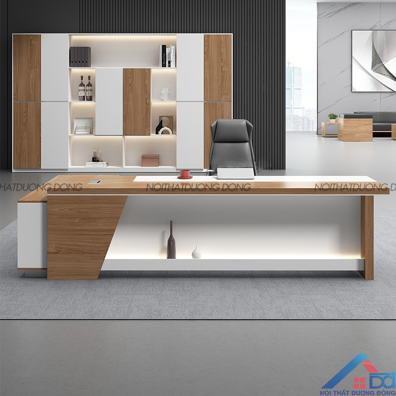 Bàn giám đốc Maiya Dương Đông là một trong những mẫu bàn lãnh đạo đang được ưa chuộng nhất hiện nay. Bàn được làm từ chất liệu gỗ công nghiệp phủ melamine bền đẹp, chống thấm nước, dễ dàng lau chùi. Thiết kế cách tân yếm chắn, vừa làm vách ngăn tạo sự riêng tư, vừa là kệ trang trí với đèn cảm biến hiện đại.