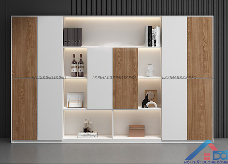Nếu có không gian, bạn có thể yêu cầu thêm tủ đứng với thiết kế và màu sắc đồng nhất, tăng phần sang trọng và tiện nghi cho không gian làm việc: