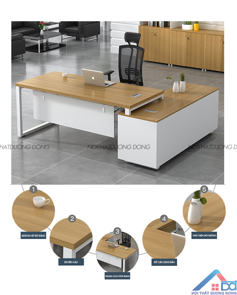 Các mẫu bàn tại Nội thất Dương Đông đều được làm bằng chất liệu gỗ công nghiệp cao cấp phủ melamine cực kỳ bền và chống ẩm mốc tốt, riêng với các mẫu bàn chân sắt có khung bàn được làm bằng thép phun tĩnh điện, chắc chắn và an toàn. Bên cạnh đó, những điểm nổi bật trong thiết kế như: yếm bàn cách tân tạo sự riêng tư và thông thoáng cho người dùng; tủ phụ nâng cấp tối ưu sức chứa,... hứa hẹn bàn Giám Đốc Mercury 1.8m chính là lựa chọn mà bạn cần để nâng cấp không gian làm việc của mình.