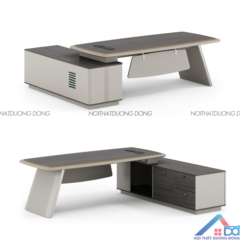 Bàn giám đốc nhập khẩu của Dương Đông có thiết kế hiện đại, mặt bàn cong và chân bàn vát tạo sự thanh toát và mới mẻ cho không gian làm việc của bạn: