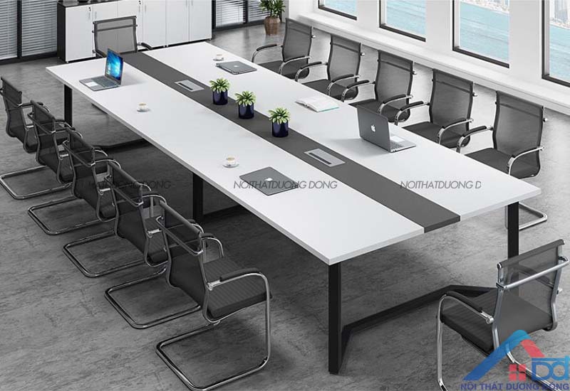 Bàn họp chân sắt hiện đại 2m4 - BH 40 có màu trắng và đen vô cùng ấn tượng