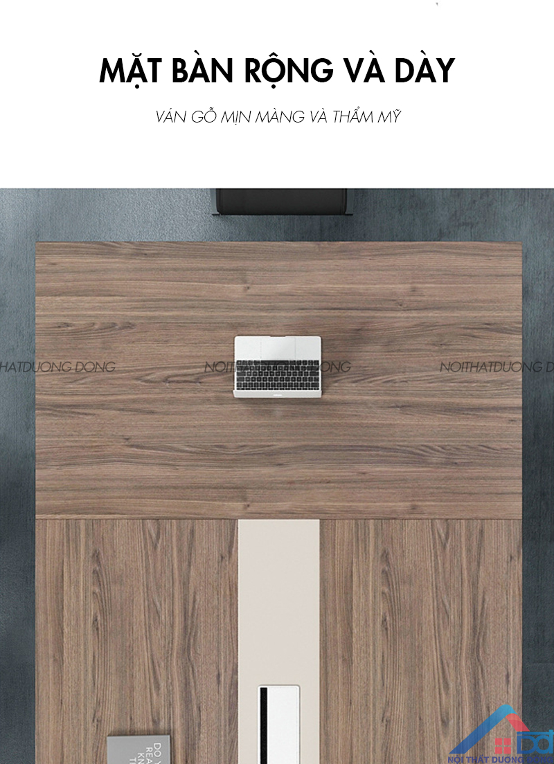 Mặt bàn được làm bằng cốt gỗ công nghiệp phủ melamine, độ dày lên đến 5cm, chịu lực tốt: