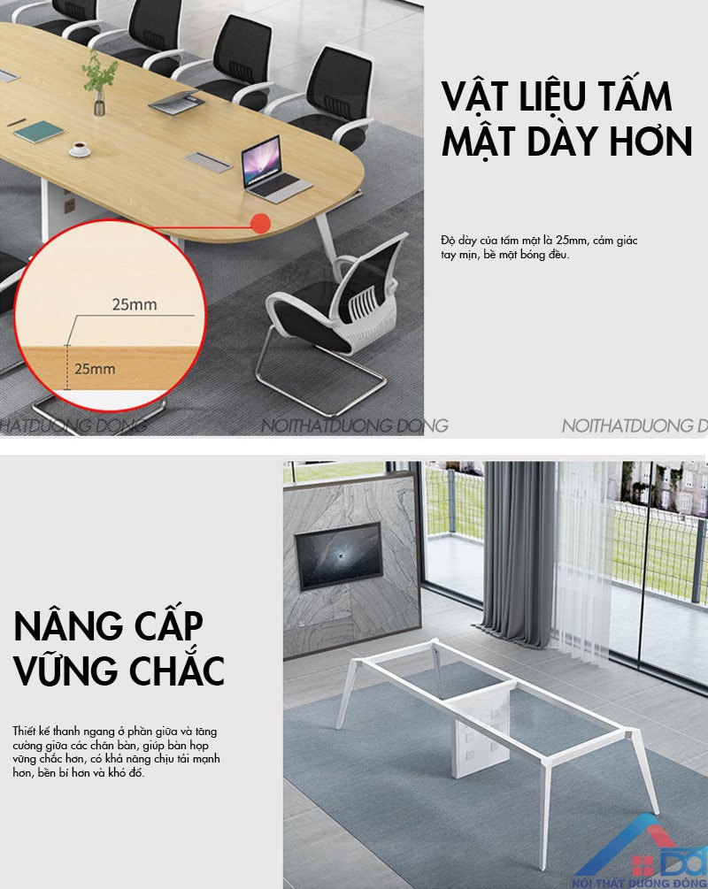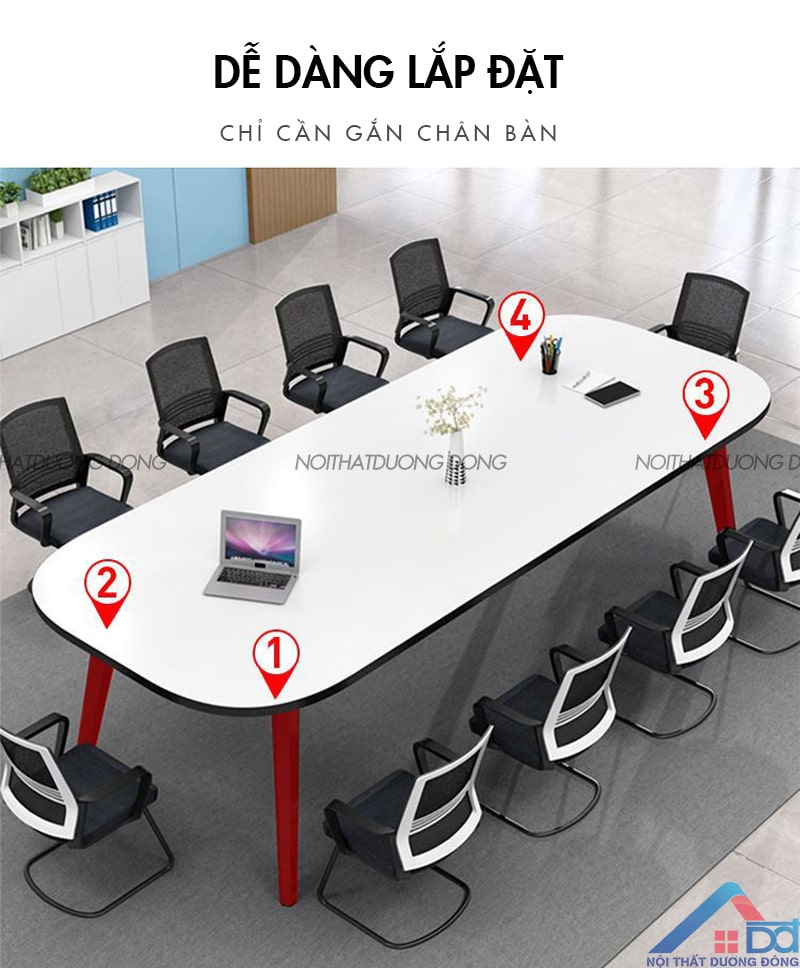 Bàn họp chân đa giác bầu dục 2m - BH 60 dễ dàng lắp đặt và sử dụng