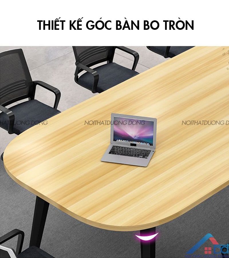 Bàn họp chân đa giác bầu dục 2m - BH 60 có thiết kế góc bàn bo tròn an toàn