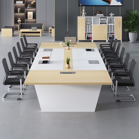 Bàn họp cỡ lớn thiết kế sang trọng được làm từ chất liệu Gỗ công nghiệp phủ melamine dày 40mm với thiết kế ấn tượng, thổi bừng sức sống không gian làm việc, mang năng lượng và truyền cảm hứng công việc cho người lãnh đạo. Tham khảo ngay bài viết sau đây để biết thêm nhiều thông tin chi tiết về mẫu bàn họp nhé!