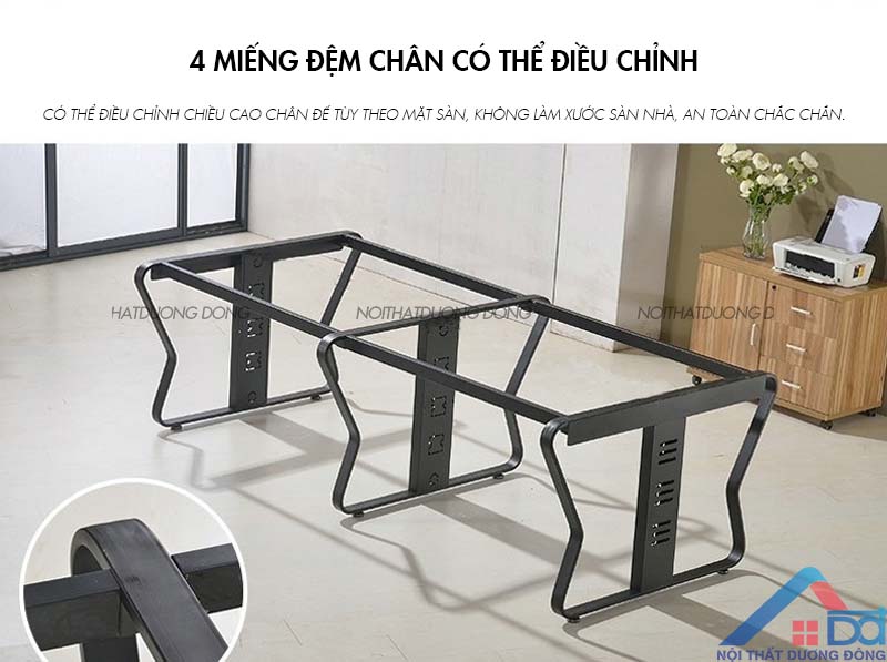 3. Chất Liệu Chất Lượng Cao: Bề mặt bàn thường làm từ gỗ MFC (Melamine Faced Chipboard), một chất liệu chất lượng cao có độ bền và độ chịu nước tốt. Chân bàn làm từ chất liệu chắc chắn như thép, đảm bảo độ ổn định và độ bền cao.
