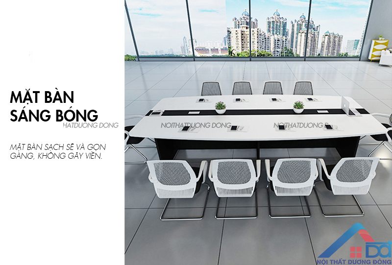 Bàn họp văn phòng kiểu dáng đơn giản tại Nội thất Dương Đông là mẫu bàn họp cao cấp được làm từ chất liệu Gỗ công nghiệp phủ melamine dày 25mm với thiết kế ấn tượng, thổi bừng sức sống không gian làm việc, mang năng lượng và truyền cảm hứng công việc cho người lãnh đạo. Tham khảo ngay bài viết sau đây để biết thêm nhiều thông tin chi tiết về mẫu bàn họp nhé!