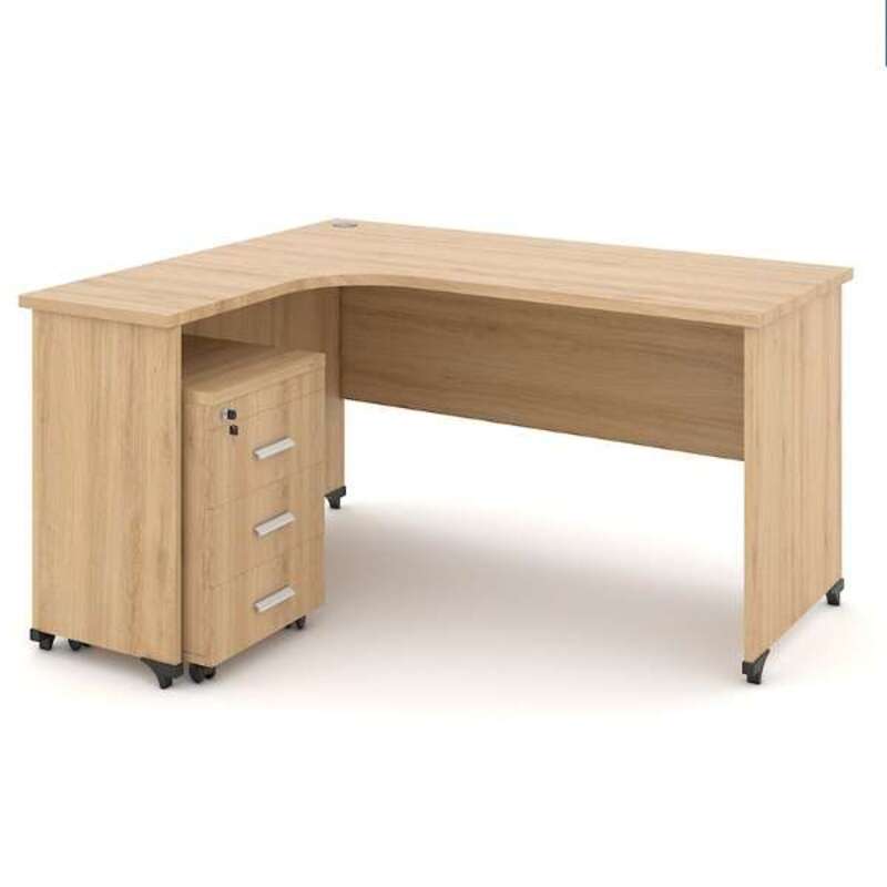 Điểm nổi bật đầu tiên của bàn LV 52 chính là thiết kế dạng chữ L, cho phép người dùng tận dụng tối đa góc làm việc. Cấu trúc bàn chia hai nhánh – một bên có thể đặt máy tính, màn hình hoặc laptop, trong khi bên còn lại có thể dùng cho ghi chép, xử lý tài liệu, bố trí máy in hay các vật dụng cần thiết khác. Kiểu dáng này rất thích hợp để bố trí vào các góc tường, giúp tiết kiệm diện tích hiệu quả mà vẫn đảm bảo không gian làm việc rộng rãi, khoa học.