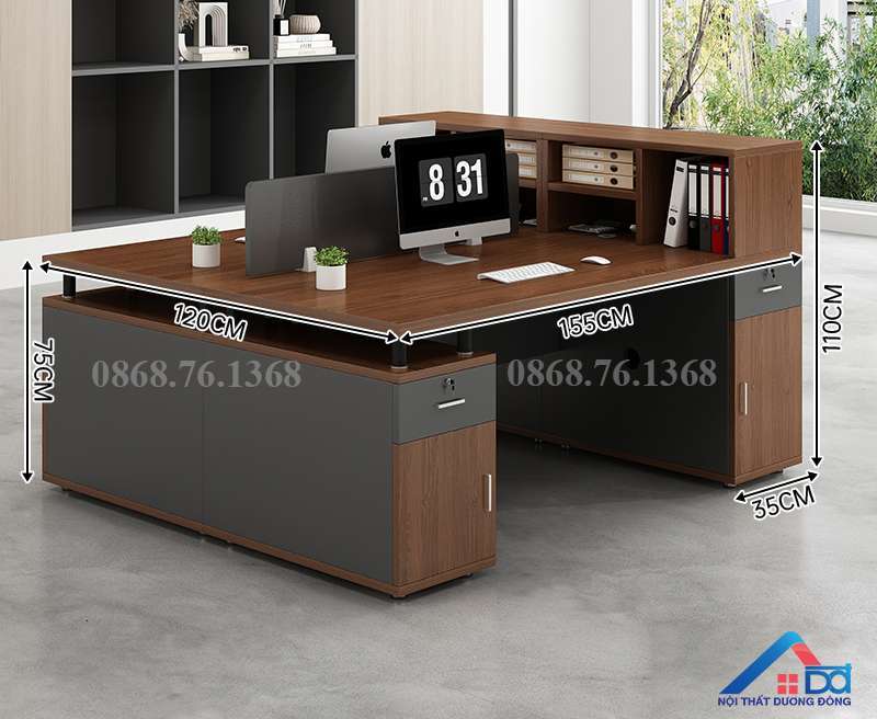 Bàn làm việc nhân viên hiện đại - LV 35 chất liệu gỗ công nghiệp