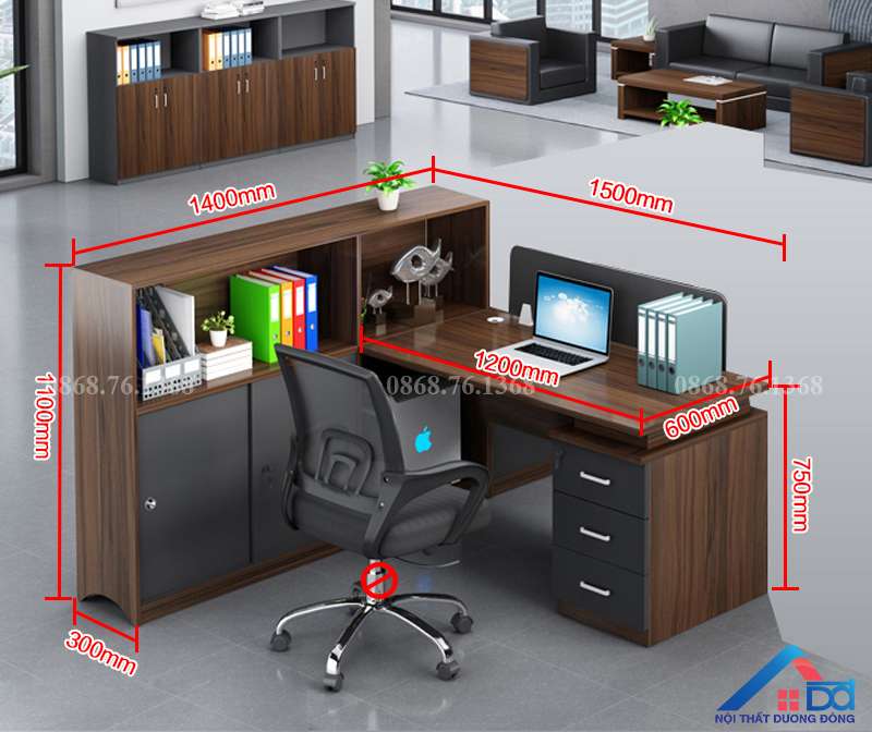 Kích thước sản phẩm bàn làm việc nhân viên kèm tủ đa năng - LV 26