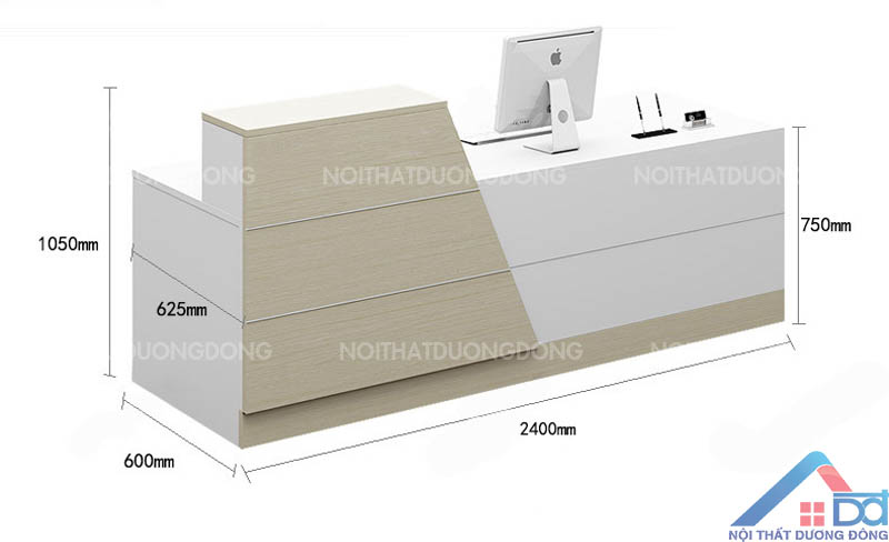 Kích thước bàn quầy lễ tân tại mỗi công ty khác nhau tùy theo diện tích mặt bằng mà có thiết kế phù hợp để khi khách hàng hay đối tác của công ty bước vào có thể gây được ấn tượng với họ bởi bàn quầy lễ tân thường được đặt gần tại vị trí ra vào của công ty là bộ mặt đại diện cho công ty đồng thời còn hỗ trợ khách hàng và đối tác có được thông tin mà họ mong muốn một cách nhanh chóng nhất. Vì vậy thiết kế bàn quầy lễ tân như thế nào cho phù hợp với diện tích mặt bằng và hợp phong thủy là điều hết sức quan trọng. Nội thất Dương Đông tự hào là đơn vị với nhiều năm kinh nghiệm trong việc thiết kế lắp đặt thi công quầy lễ tân với đủ mẫu mã sản phẩm, chất liệu và kích thước khác nhau.