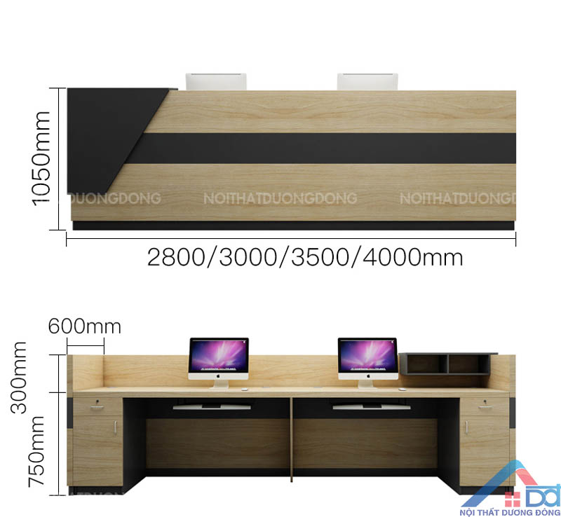 Kích thước bàn quầy lễ tân tại mỗi công ty khác nhau tùy theo diện tích mặt bằng mà có thiết kế phù hợp để khi khách hàng hay đối tác của công ty bước vào có thể gây được ấn tượng với họ bởi bàn quầy lễ tân thường được đặt gần tại vị trí ra vào của công ty là bộ mặt đại diện cho công ty đồng thời còn hỗ trợ khách hàng và đối tác có được thông tin mà họ mong muốn một cách nhanh chóng nhất. Vì vậy thiết kế bàn quầy lễ tân như thế nào cho phù hợp với diện tích mặt bằng và hợp phong thủy là điều hết sức quan trọng. Nội thất Dương Đông tự hào là đơn vị với nhiều năm kinh nghiệm trong việc thiết kế lắp đặt thi công quầy lễ tân với đủ mẫu mã sản phẩm, chất liệu và kích thước khác nhau.