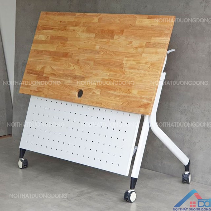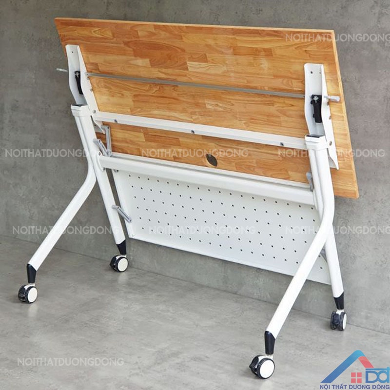 Dễ Dàng Di Chuyển: Bàn training mặt gỗ gấp gọn thường nhẹ và có bánh xe hoặc chân đế di chuyển, giúp bạn dễ dàng di chuyển và sắp xếp lại không gian theo nhu cầu.
