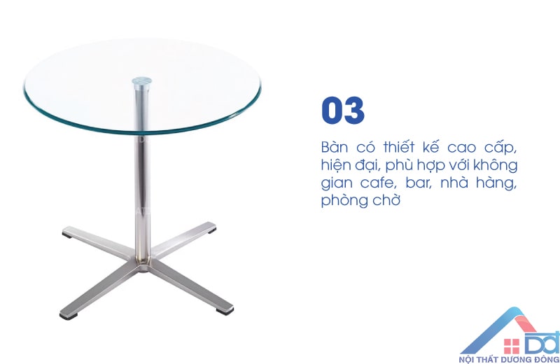 Bàn có thiết kế cao cấp, hiện đại, phù hợp với không gian cafe, bar, nhà hàng.