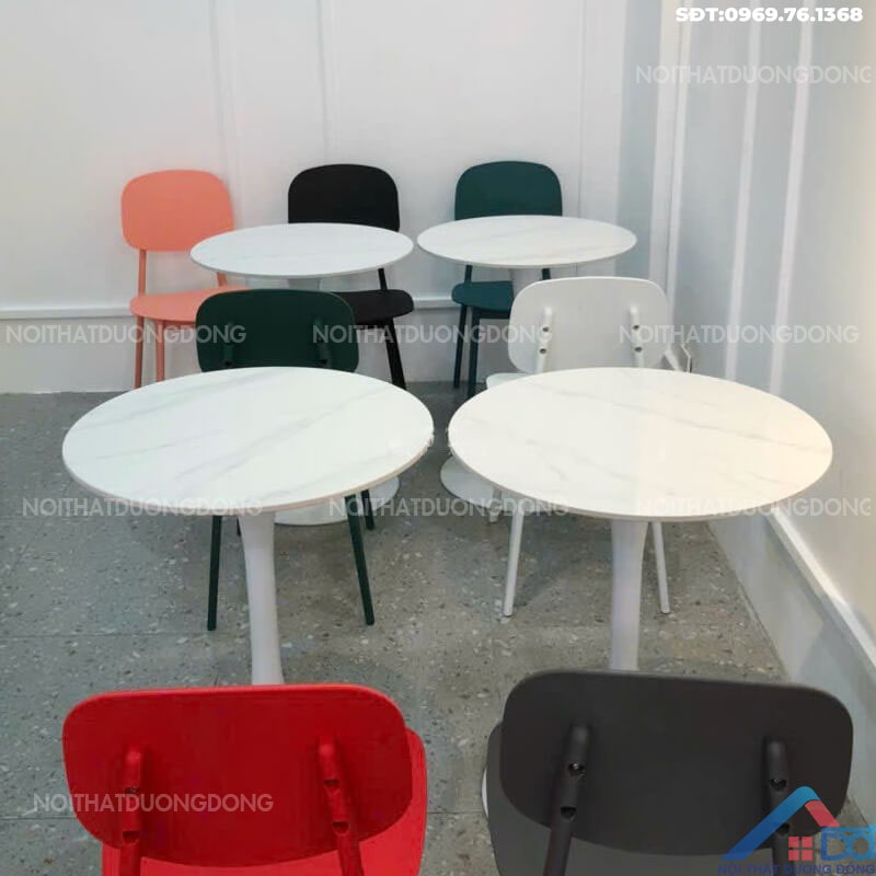Chất liệu: Mặt bàn bằng đá ceramic, Chân bàn sắt sơn tĩnh điện.