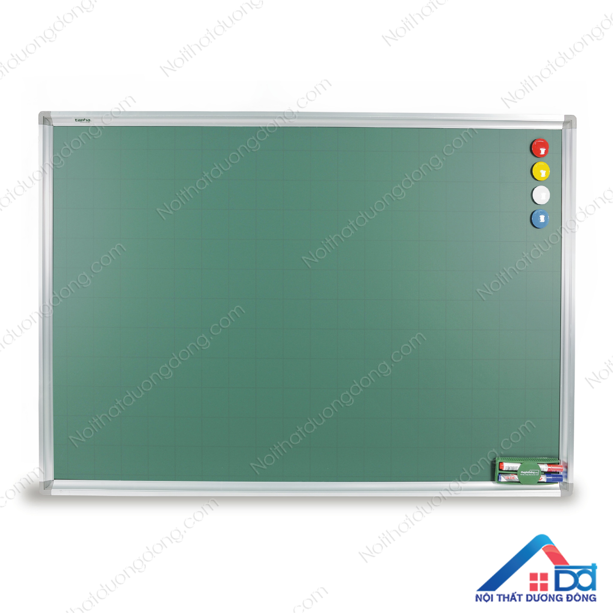 - Mặt bảng: mặt bảng xanh viết phấn có dòng kẻ ô ly mờ 5x5cm, chống lóa, dễ viết dễ xóa, không để lại vết sau khi xóa, hít nam châm mạnh