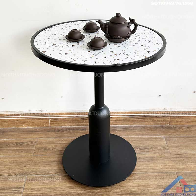 Bề mặt bàn bằng đá kết hợp khung bàn sắt tạo nên sự hài hòa và chắc chắn