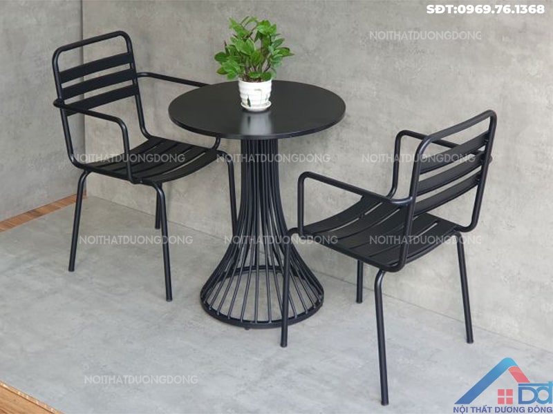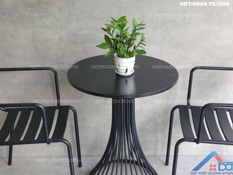 Bộ bàn ghế cafe tròn khung sắt -BGCF 23 mặt bàn màu đen