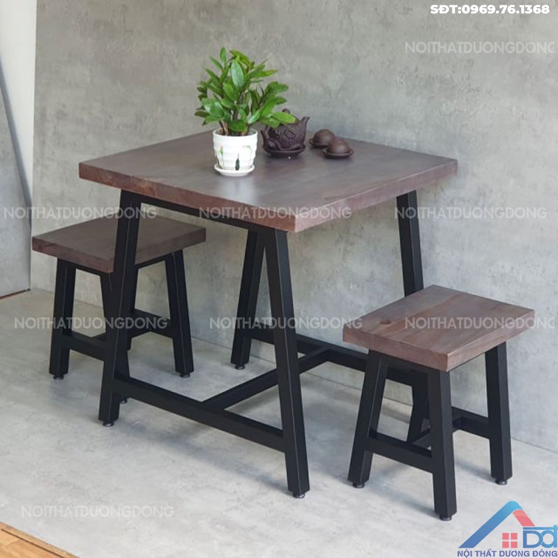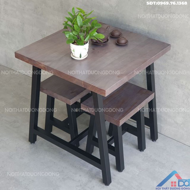 Combo bộ bàn ghế vuông gỗ thông -BGCF 26 chân bàn chắc chắn