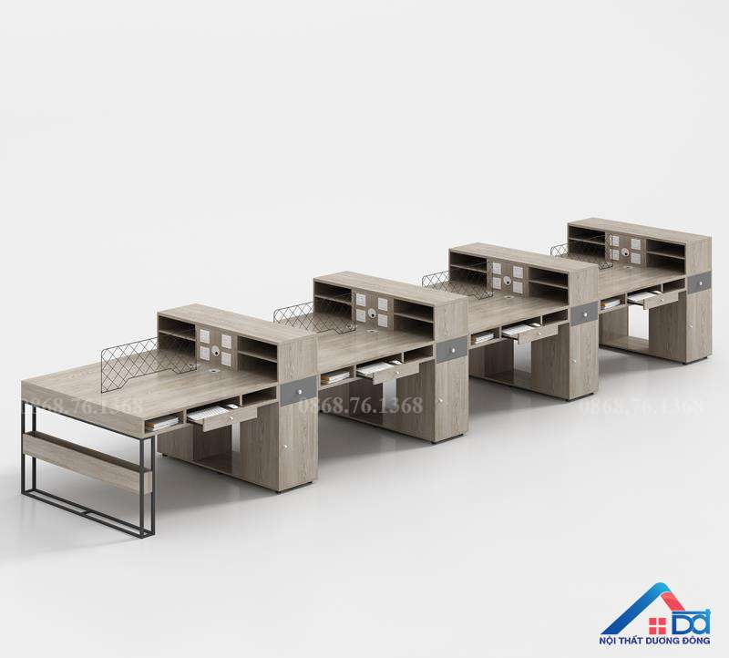 Cụm bàn làm việc 8 người có tủ phụ – CB 57 là giải pháp nội thất tối ưu dành cho các văn phòng có quy mô vừa và lớn, nơi đề cao sự kết nối nhóm và tính chuyên nghiệp trong tổ chức không gian làm việc. Với thiết kế đồng bộ, tích hợp tủ phụ tiện lợi và bố trí khoa học, CB 57 không chỉ giúp tiết kiệm diện tích mà còn mang đến sự thoải mái, ngăn nắp cho từng vị trí sử dụng. Đây là lựa chọn lý tưởng của các doanh nghiệp hiện đại đang tìm kiếm sự cân bằng giữa thẩm mỹ, công năng và hiệu suất vận hành trong văn phòng.