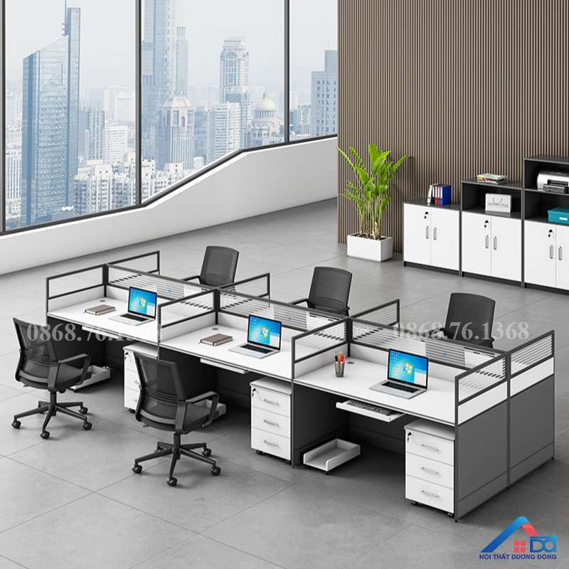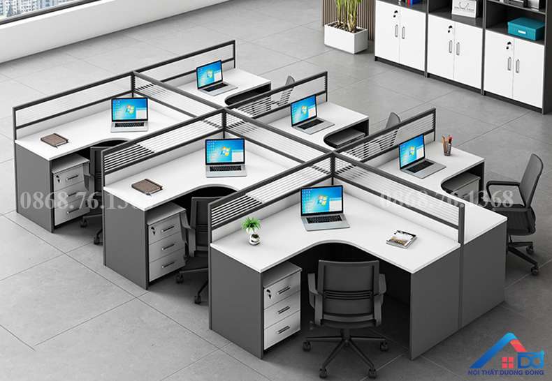 Vách ngăn phân cách giữa các chỗ ngồi sử dụng chất liệu hiện đại, giúp tạo ra sự riêng tư cần thiết nhưng vẫn đảm bảo kết nối, hỗ trợ giao tiếp giữa các thành viên trong nhóm. Các vách ngăn còn được thiết kế với chiều cao hợp lý, vừa tạo cảm giác tập trung làm việc, vừa không gây cảm giác bí bách hay chia cắt không gian.