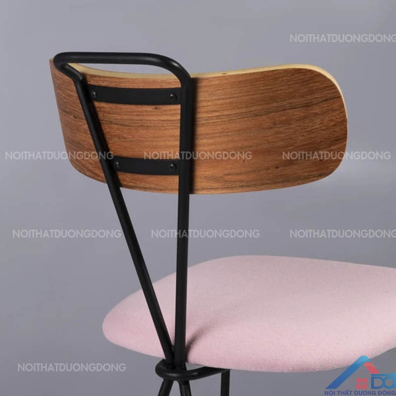 Chất liệu: Mặt gỗ bọc đệm, chân ghế bằng kim loại sơn tĩnh điện màu đen, Lưng tựa bằng gỗ