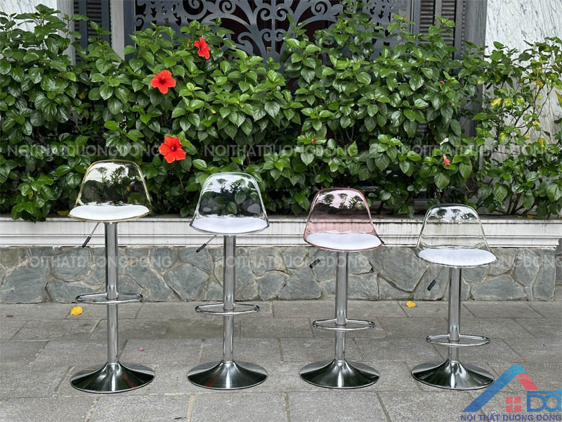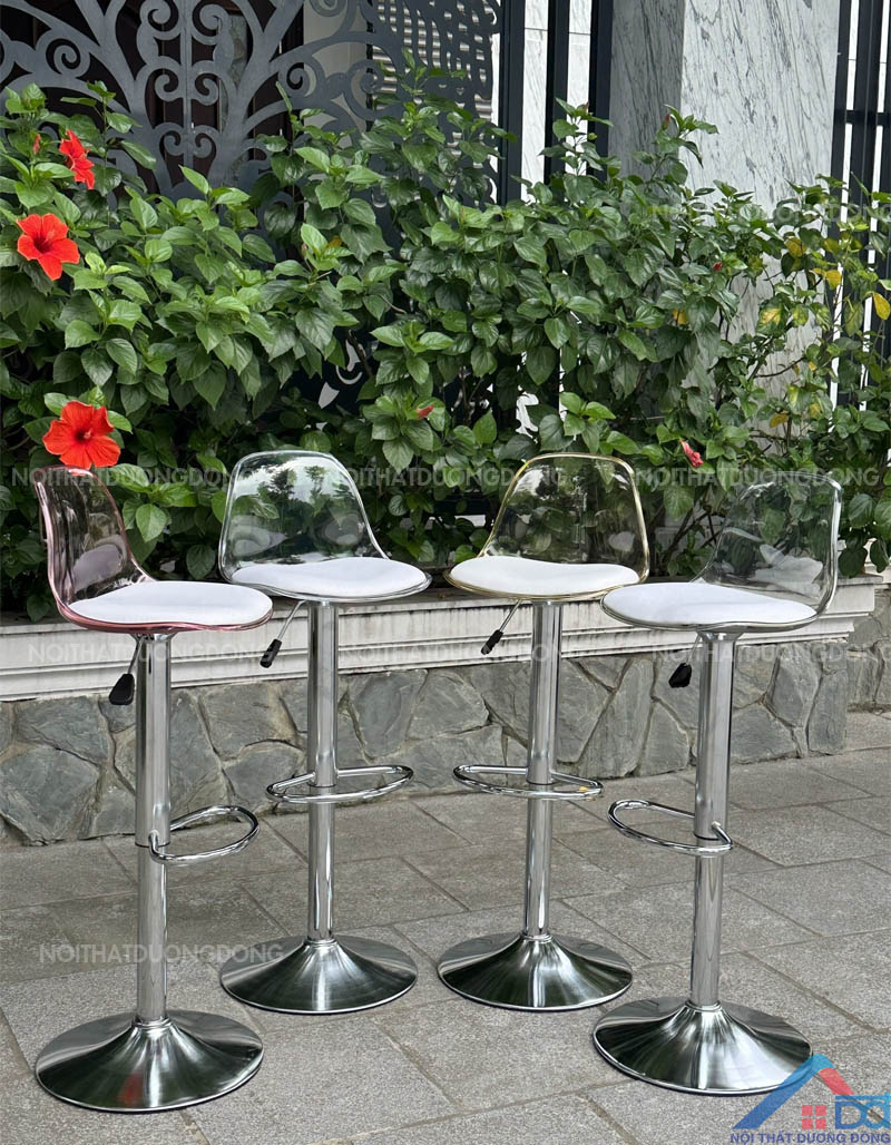 Thiết kế trong suốt: Ghế được thiết kế với vật liệu trong suốt, tạo nên một vẻ đẹp độc đáo và hiện đại. Điều này giúp tạo nên một không gian mở, nhẹ nhàng và thú vị cho không gian quầy bar, bàn bếp. So với các mẫu ghế khác, mẫu ghế này có được sự nhẹ nhàng, tinh tế và đem lại giá trị nghệ thuật cho không gian nội thất.