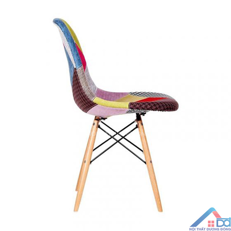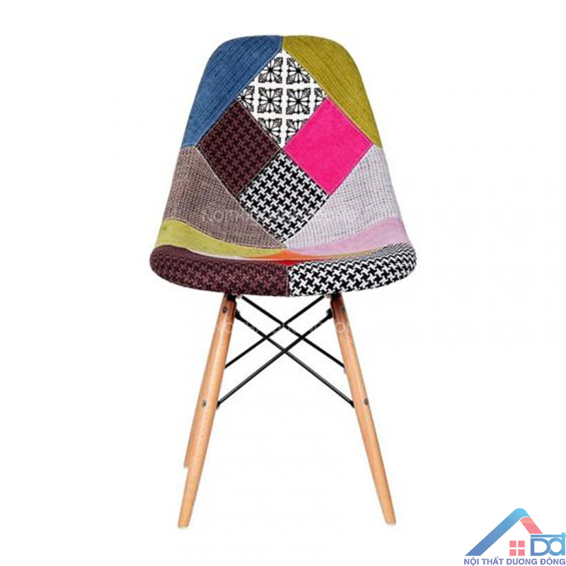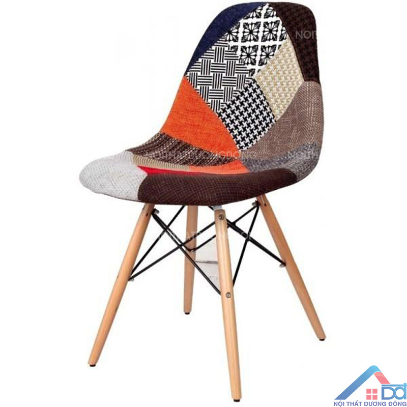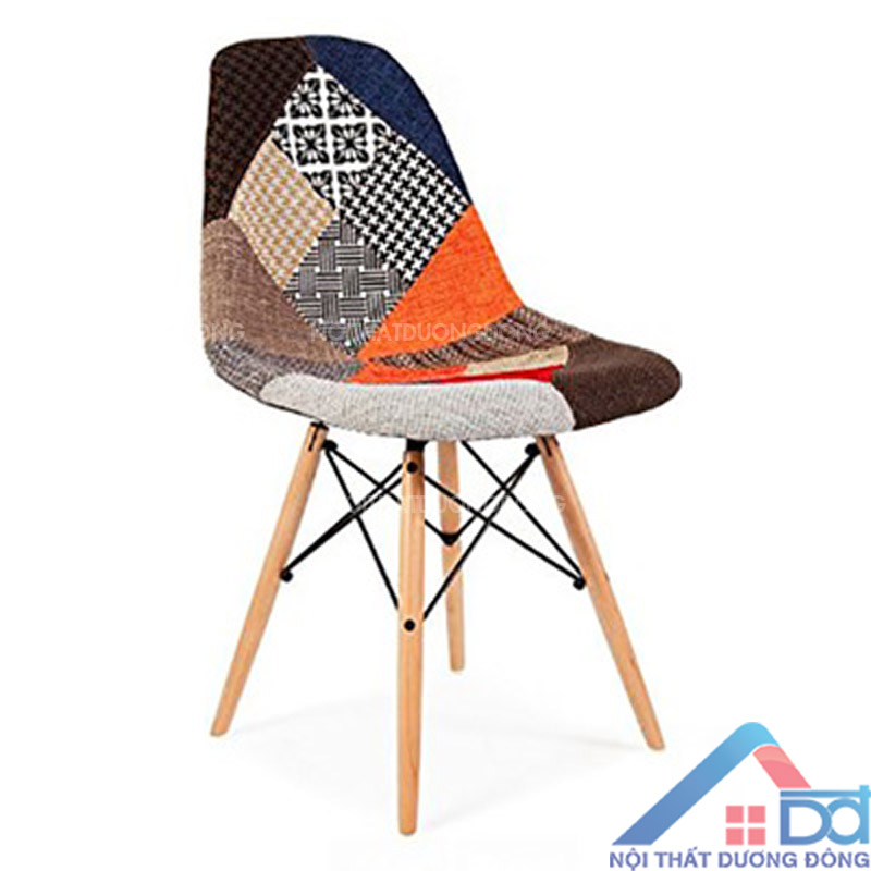 Chất liệu: Thân ghế nhựa đúc ABS có đệm mút bọc vải thổ cẩm. Chân gỗ sồi