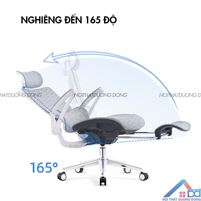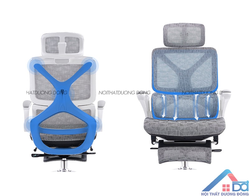 Mẫu ghế công thái học ergonomic để chân lưới -GX 23 có khả năng nằm nghiêng 165 độ. Tận dụng để nghỉ ngơi, nghỉ trưa cho không gian nội thất.