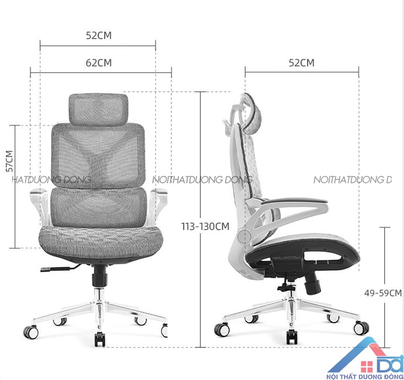 Kích thước của ghế công thái học ergonomic để chân lưới -GX 23