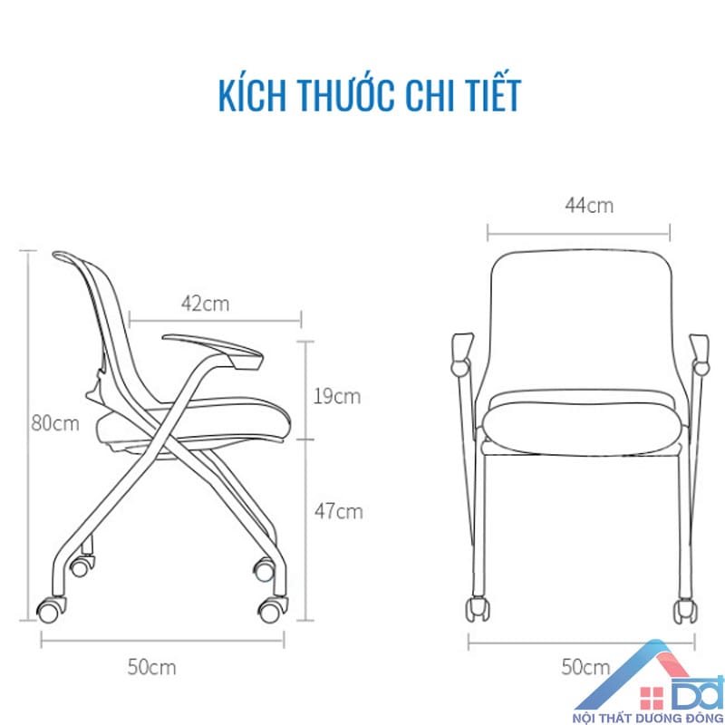 Kích thước chi tiết của mẫu ghế đào tạo có bàn -TN 23
