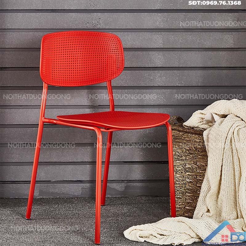 Ghế nhựa lỗ khung sắt -CF 19 có màu đỏ tinh tế