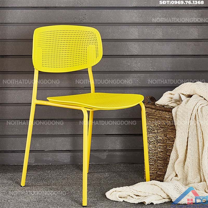 Ghế nhựa lỗ khung sắt -CF 19 có màu vàng độc đáo