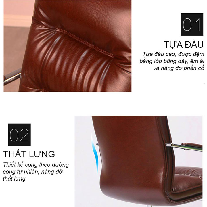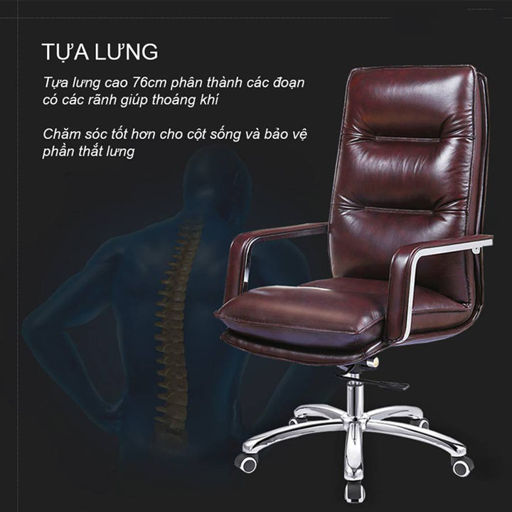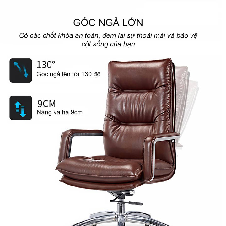 Ghế xoay giám đốc da bò thuộc dòng ghế giám đốc da hiện đại. Phần gối và tựa lưng của ghế văn phòng được lót với nệm dày ôm sát cơ thể phù với kiểu dáng người Việt hạn chế các bệnh về văn phòng. Ghế thường được sử dụng cho các cấp độ trưởng phòng, giám đốc, quản lý cấp cao.