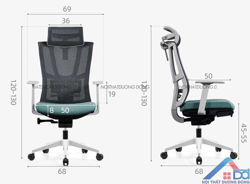 Kích thước của mẫu ghế xoay tựa đầu -GX 40